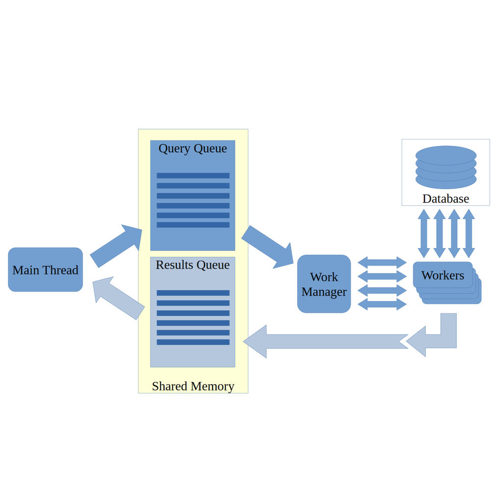 PLY provides a connection pool combined with a multi-threaded worker pool, which allows the simultaneous processing of multiple queries from a query queue. Results are returned to a results queue.