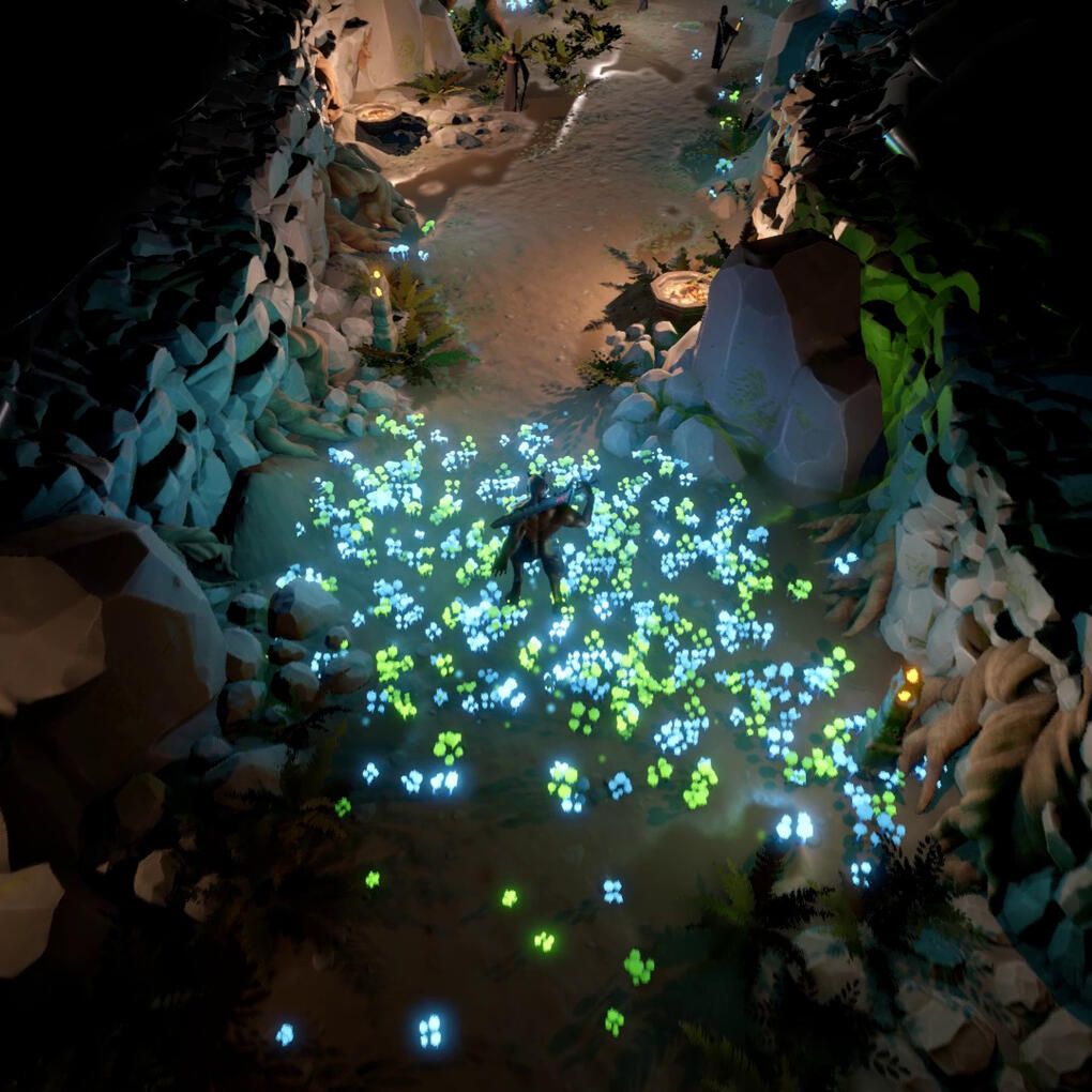 These glowing bio-luminescent mushrooms react to player presence and emit spores that float away in the breeze. Models by Jamie Jenssen. Shaders and VFX by me.